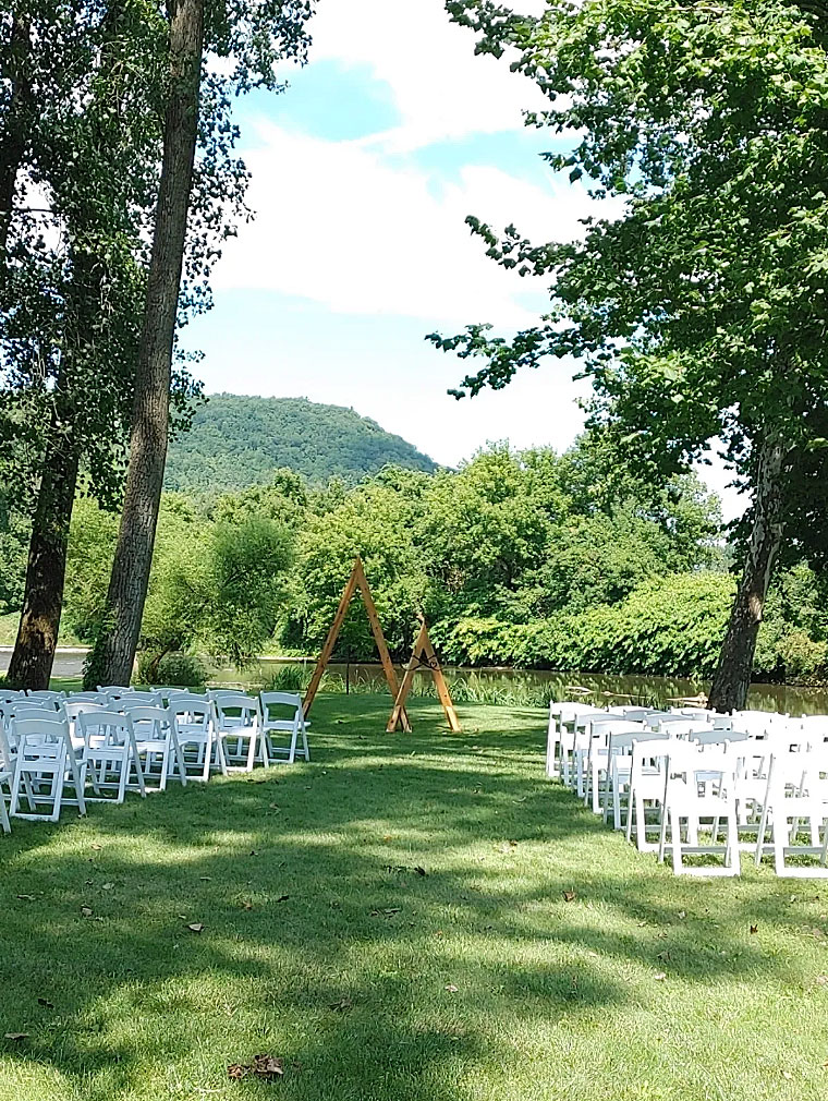 A serene riverside setting for couples seeking a naturally beautiful backdrop for their wedding vows.