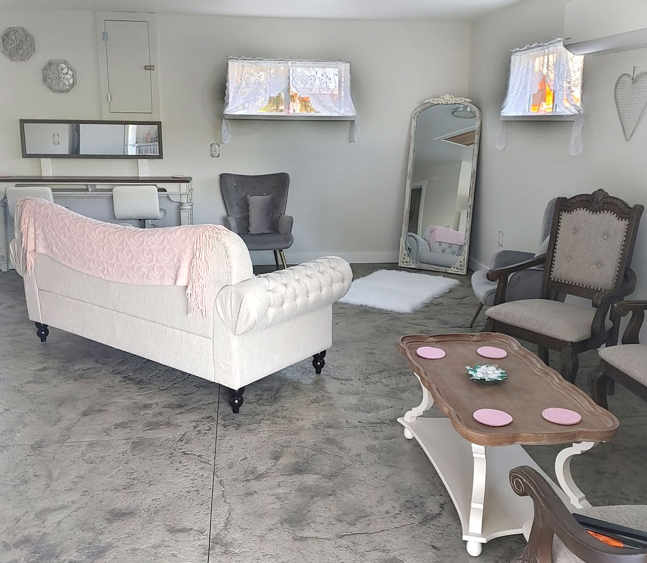 Where Country charm meets a little glam: A cozy elegant space with a hint of sparkle - perfect for laughter, photos and precious pre-ceremony memories