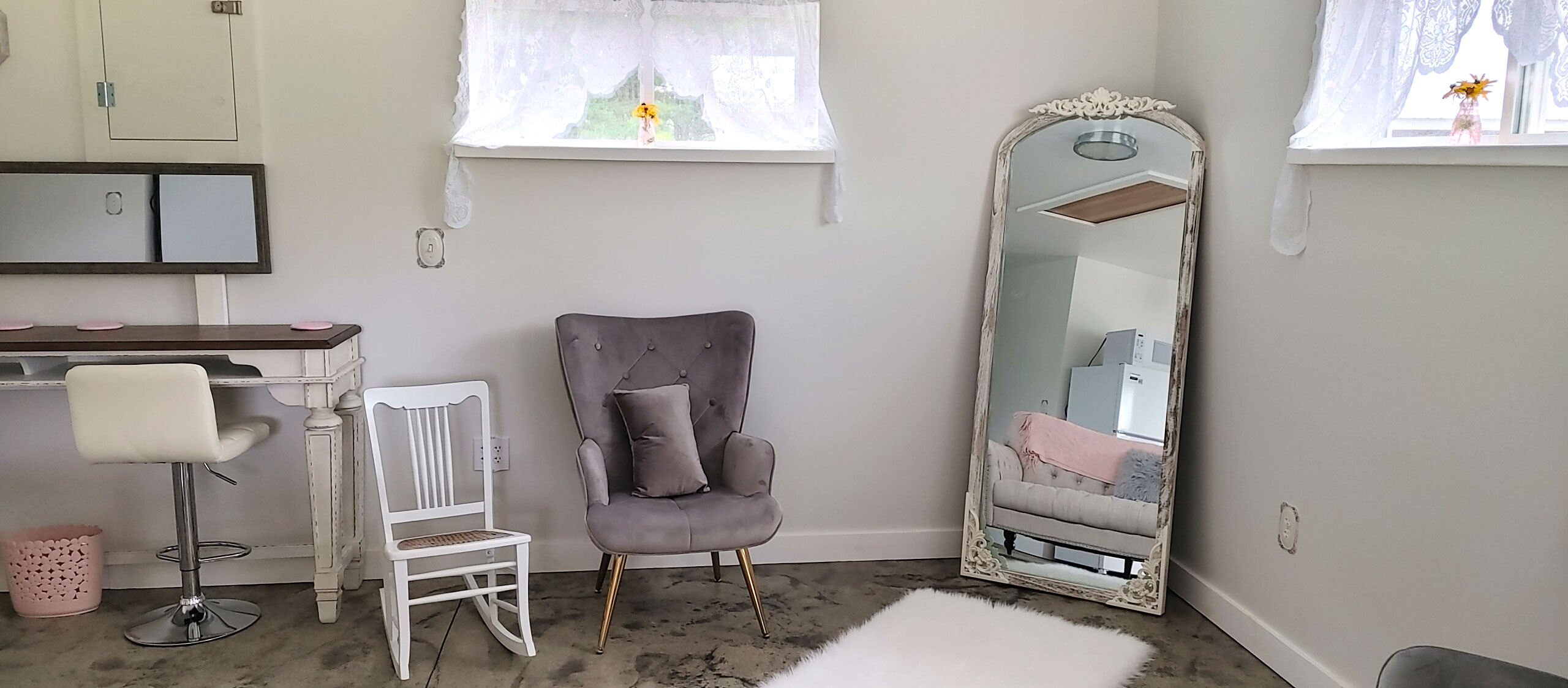 Where Country charm meets a little glam: A cozy elegant space with a hint of sparkle - perfect for laughter, photos and precious pre-ceremony memories
