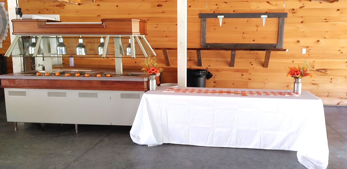 Includes a steam table, an ice table and use of the banquet tables. The caterers can set the area up with the layout they prefer