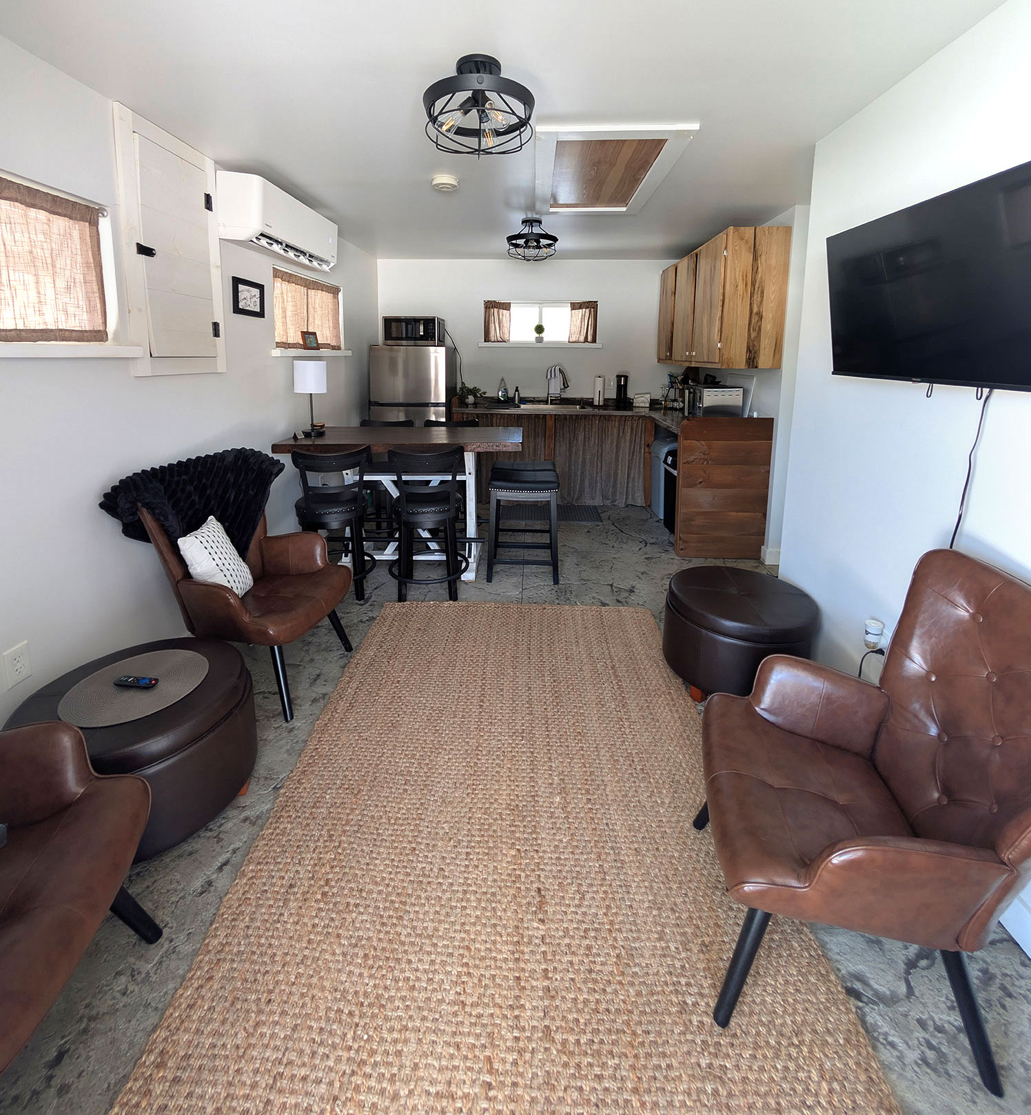 Where The groomsmen gather: A masculine cabin with brown leather, black accents and rustic texture